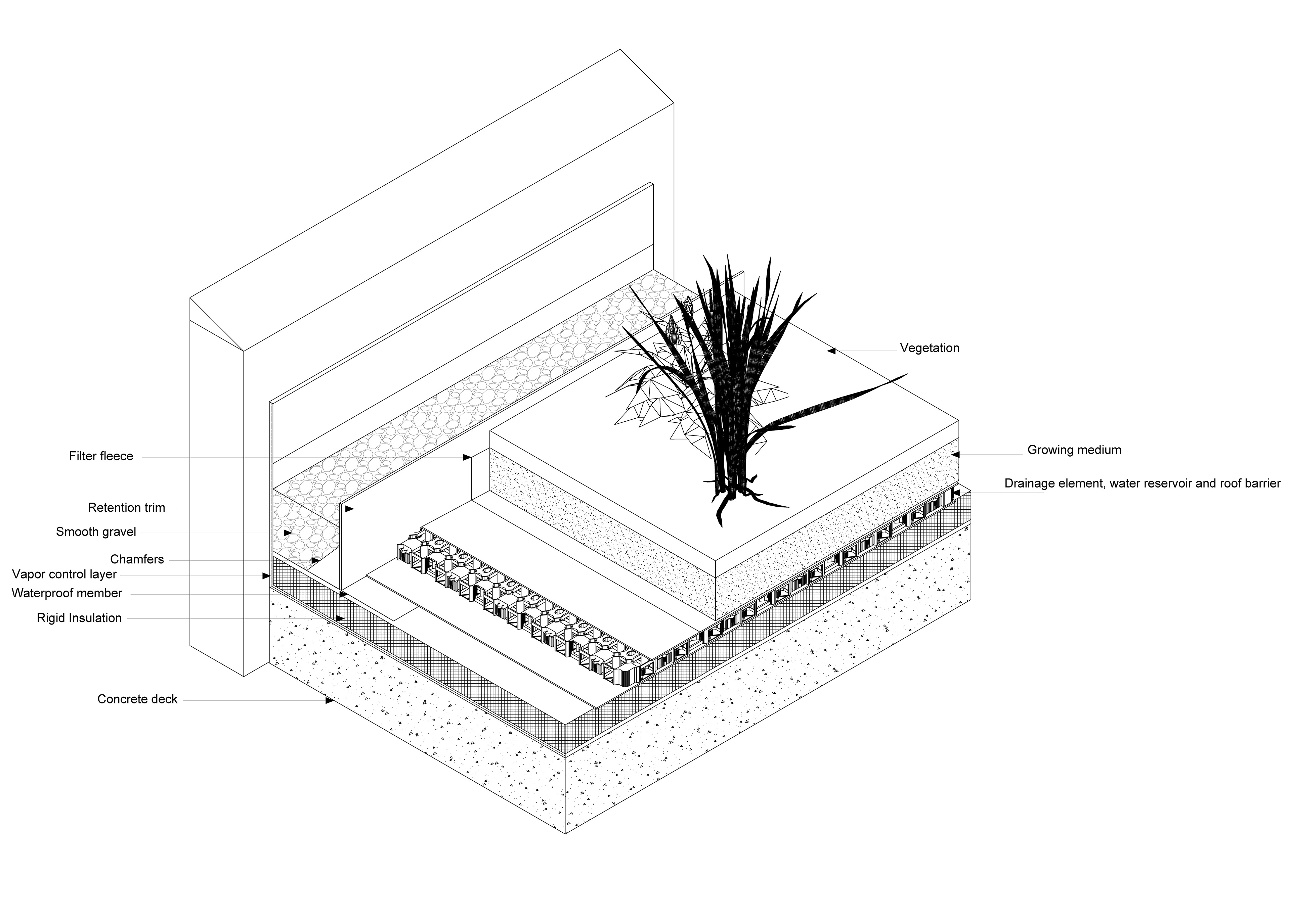 The enclosure system was studied in depth, with a focus on its thermal insulation performance, water resistance, and structural support. A detailed sectional drawing of the exterior wall was developed to illustrate the complete assembly, including all material layers,