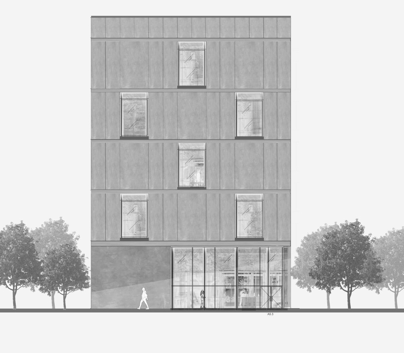 We developed brick wall details as a study to explore how the material can be applied effectively to the building’s exterior envelope.