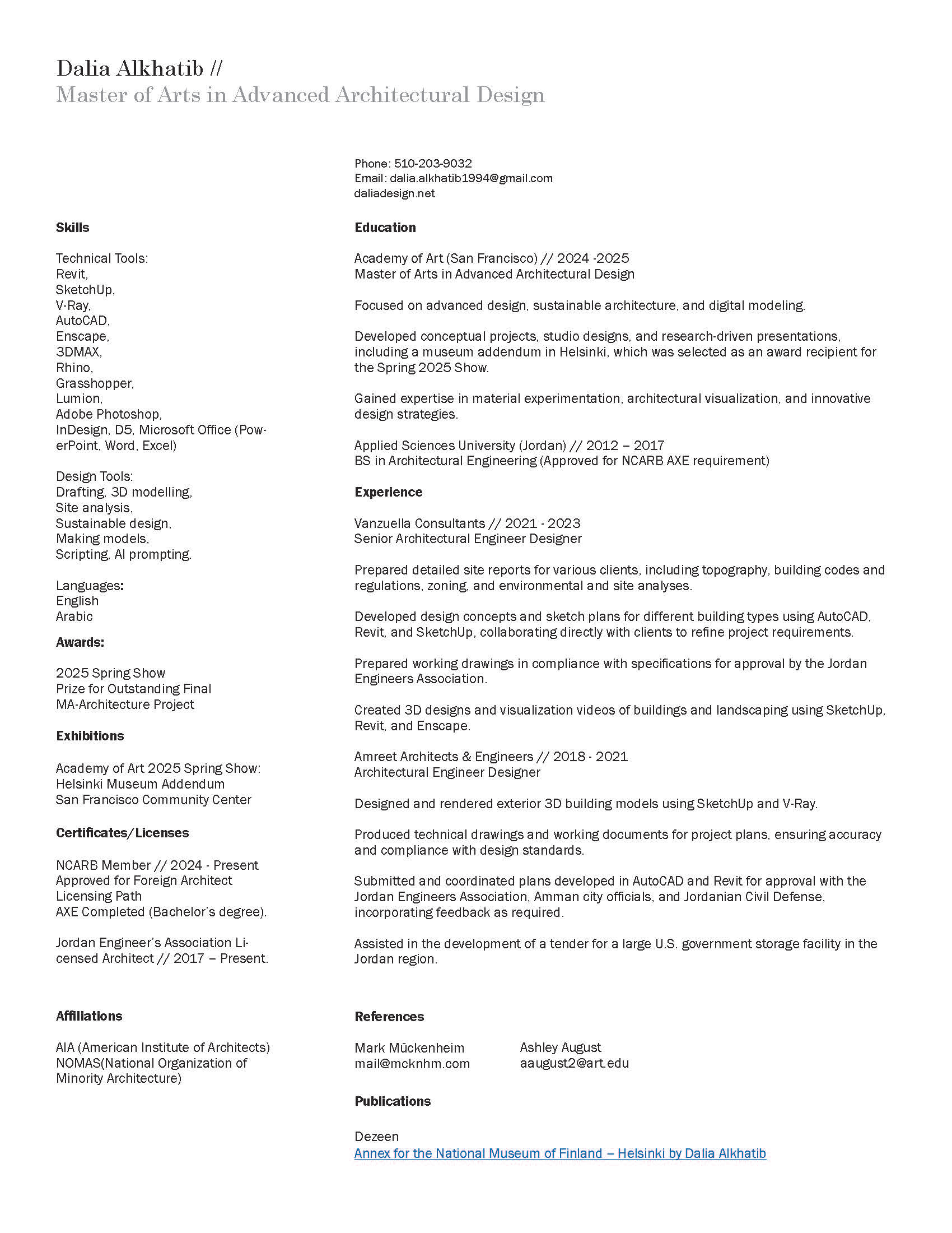 I'm an architect driven by curiosity, precision, and creative problem-solving. I specialize in architectural design, spatial experience, façade systems, and material exploration.